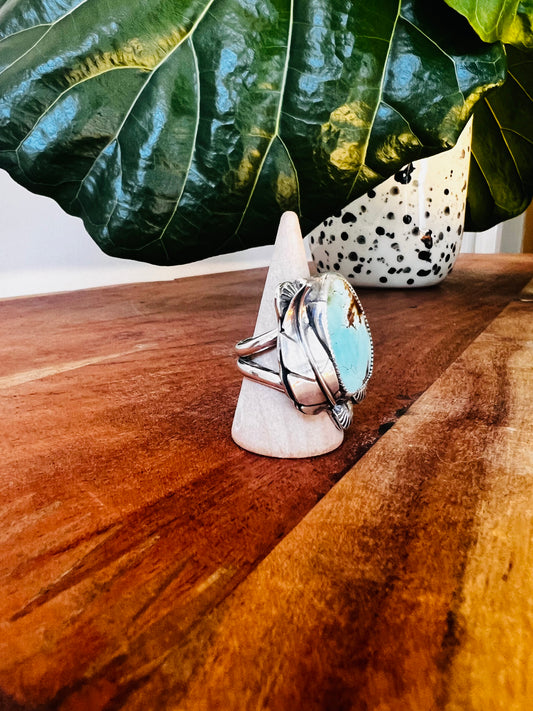 Rising Phoenix Turquoise and Sterling Leaf Ring