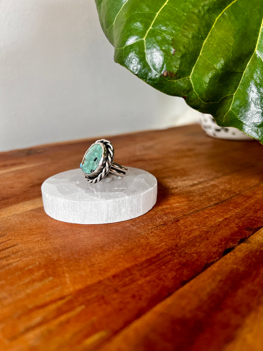 Asymmetrical Apache Variscite Sterling Twisted Mesa Ring