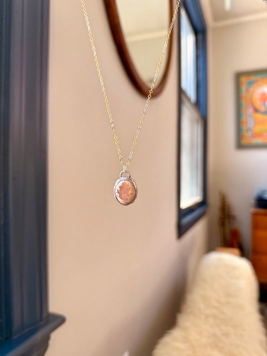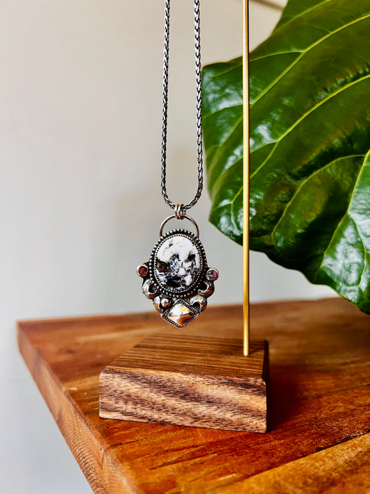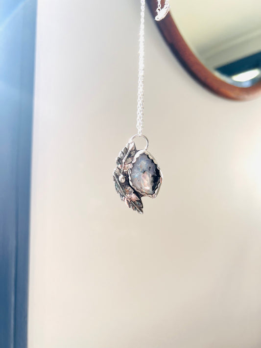 Rainbow Moonstone and Sterling Silver Botanical Pendant Necklace